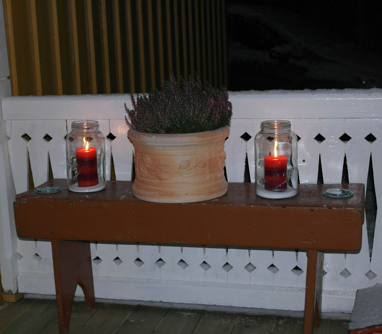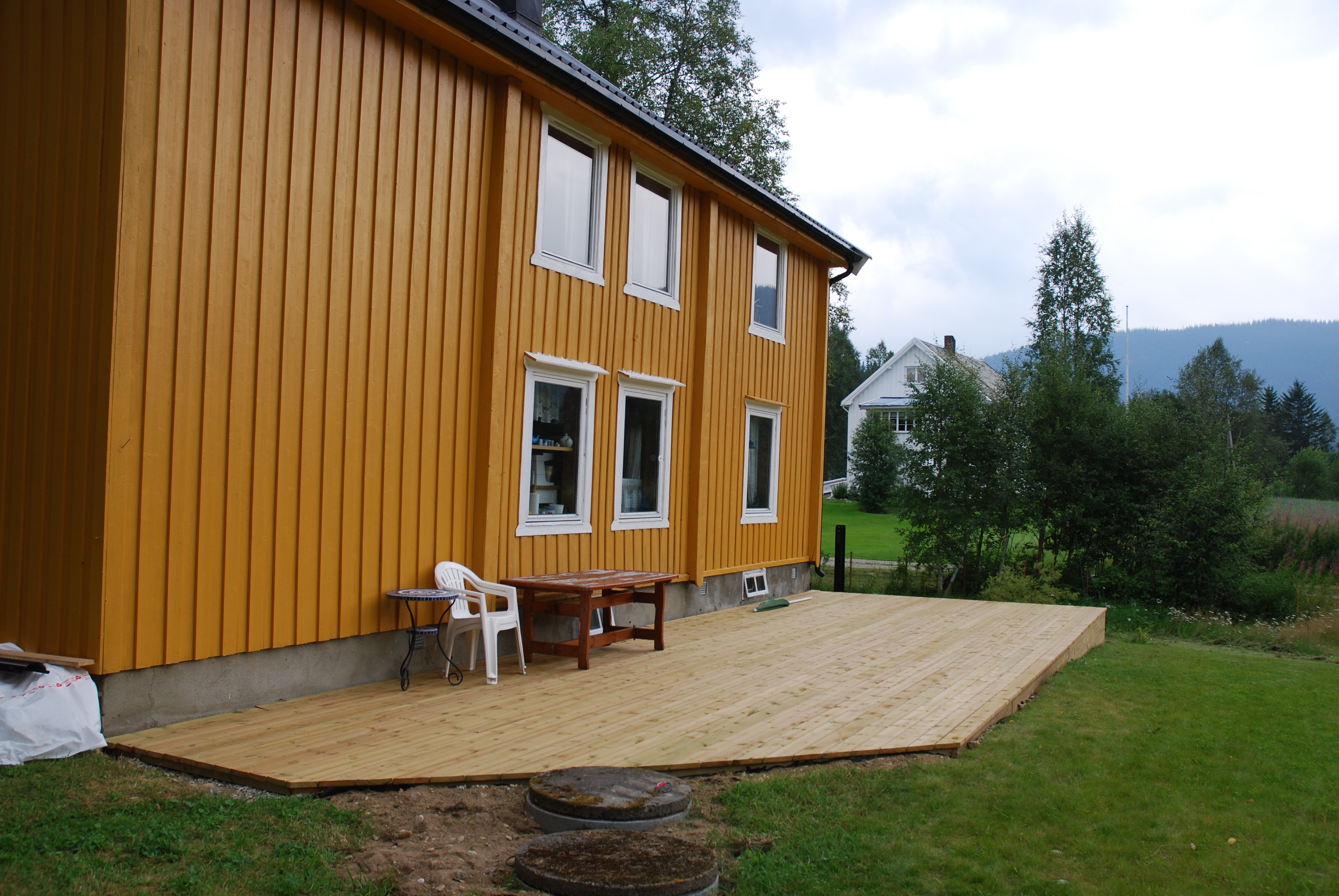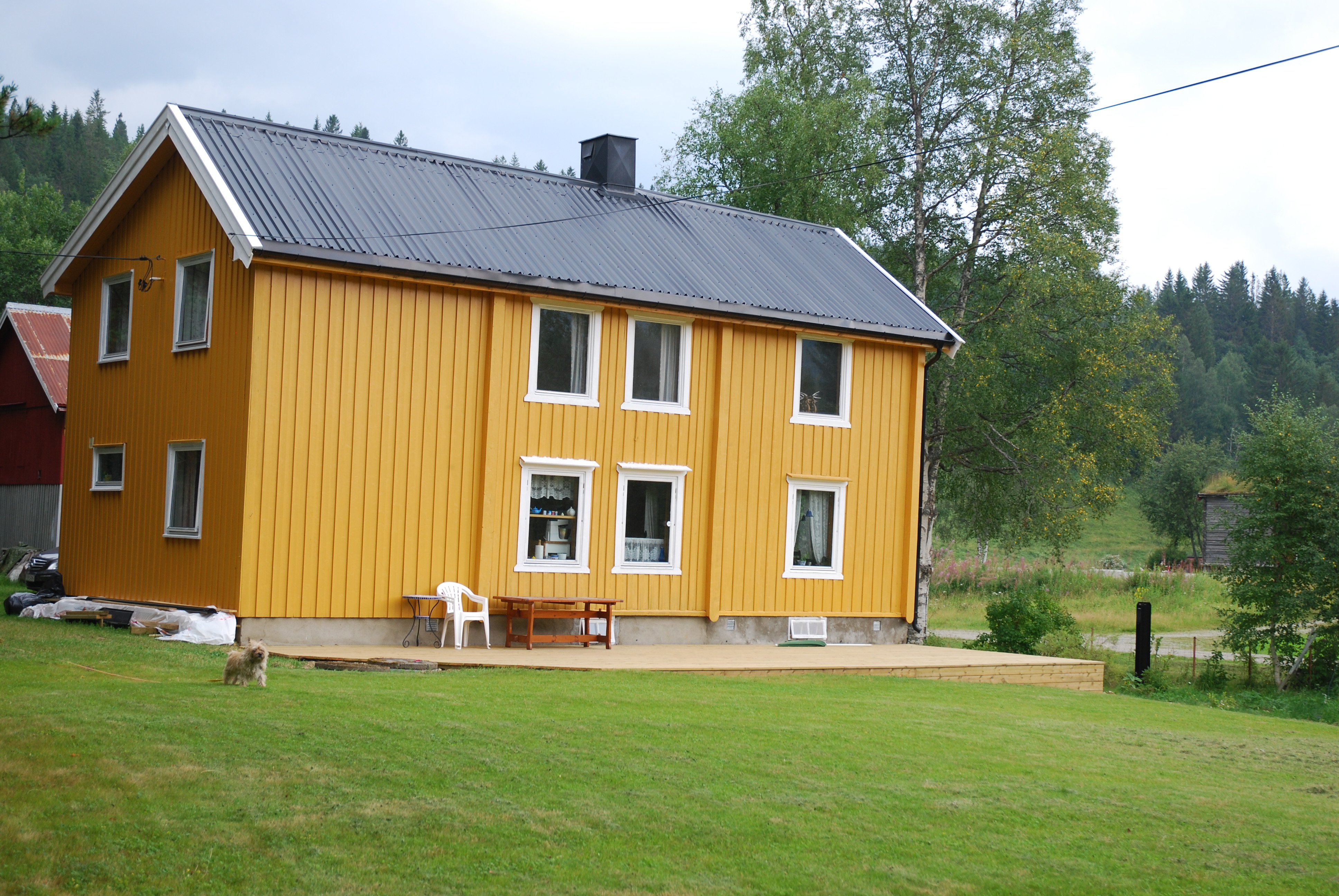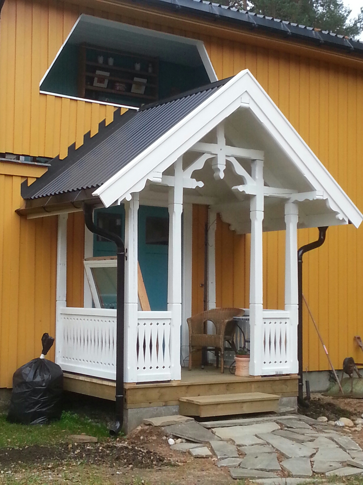 Inngangspartiet på plass og måla. Lurer på om noko av det skulle vore gult?