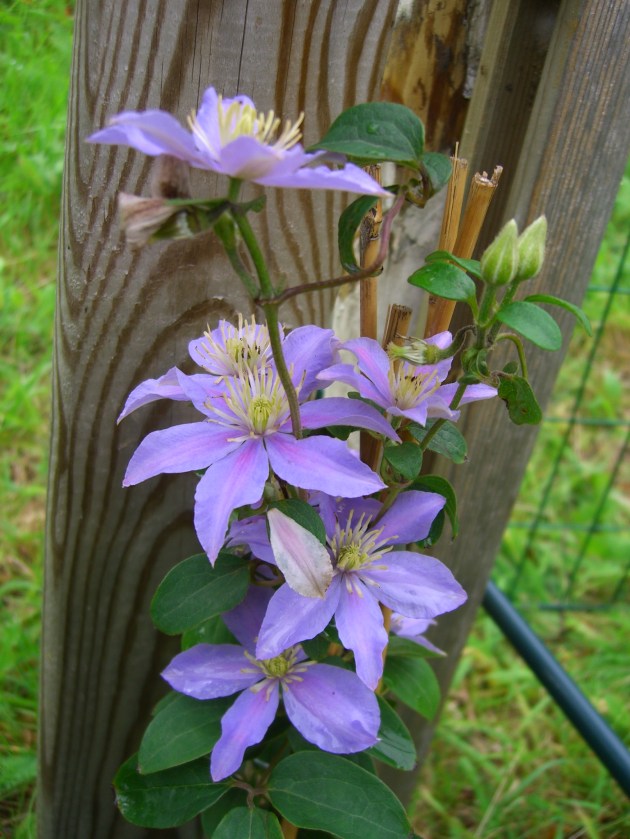 Er spent på om desse klarer seg her på Singsås! Dei har fått plassar i hagen som skal gje dei så gode sjanser som mogleg. Klematisen har fått plass ved klatrebogen inn mot bakhagen – der er det ganske lunt og både jord og soltilhøve skal gje den bra veksttilhøve. Peonen har fått plass i nærleiken av flaggstanga – der er det bra jord for den på denne ellers så sandfylte plassen. Alfred fekk plass mellom furuene i nærleiken av den mest brukte uteplassen.
