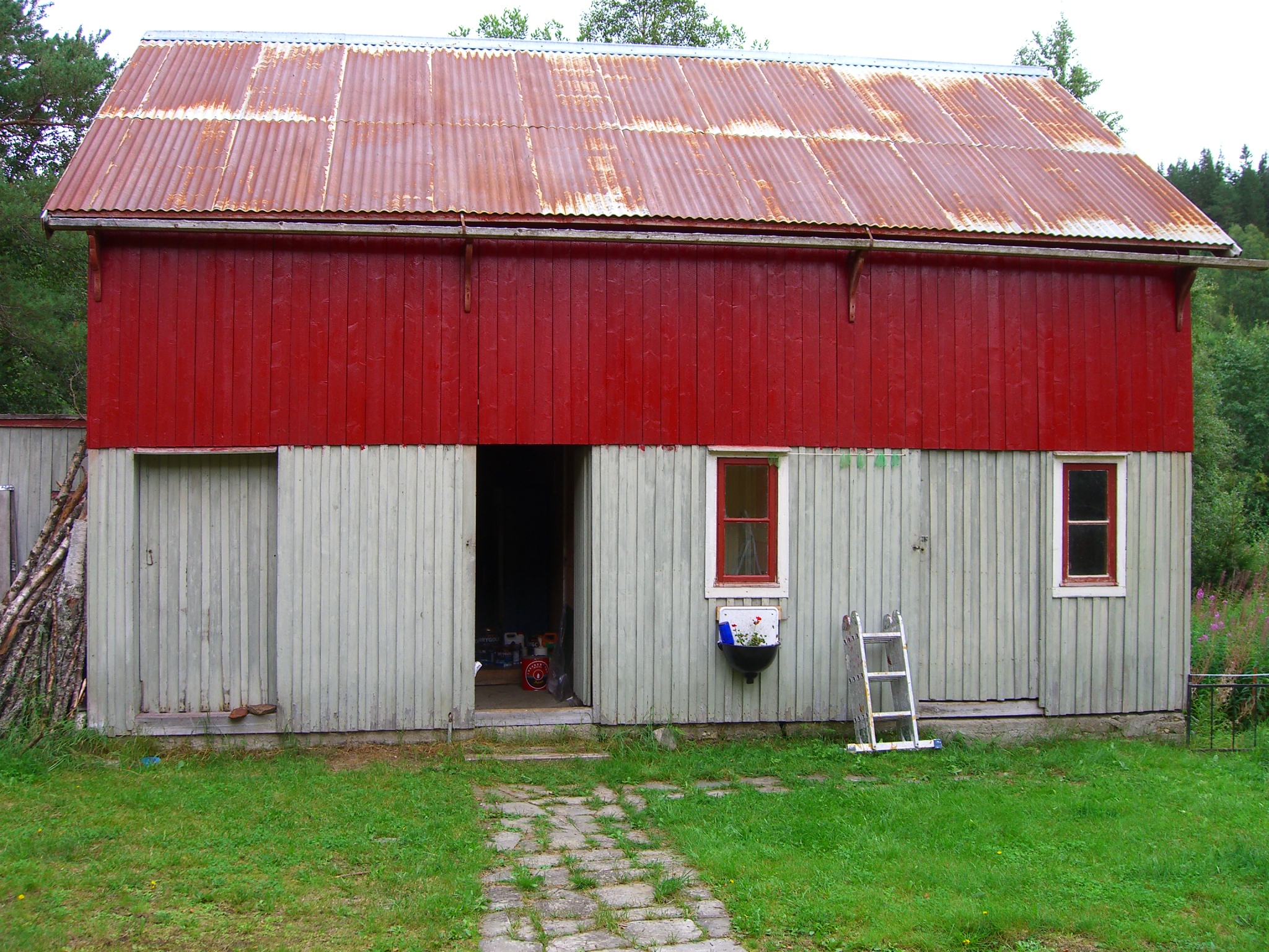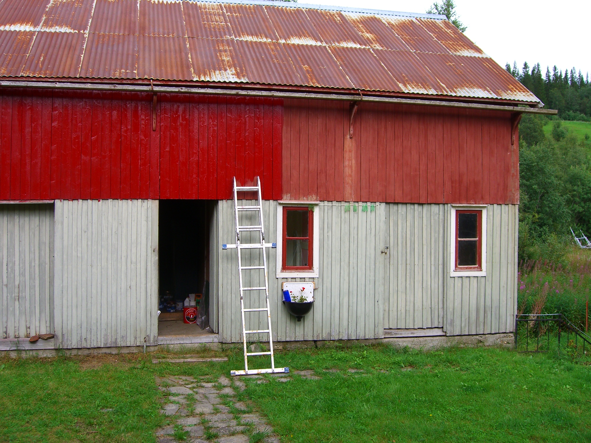 Uthuset treng og måling. Meininga var at det skulle bli Trønderraudt – men fekk mange liter med Vestlandsraudt – så da blir det det i staden! (Bileta blir større om du trykker på dei.)